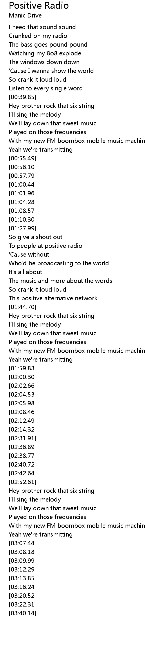 So crank that radio loud with Manic Drive |