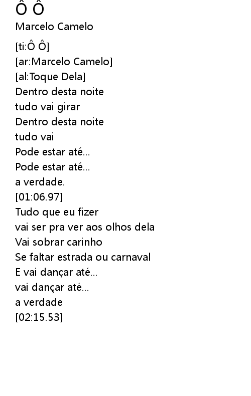 | [01:49.89] | Se faltar estrada ou carnaval |