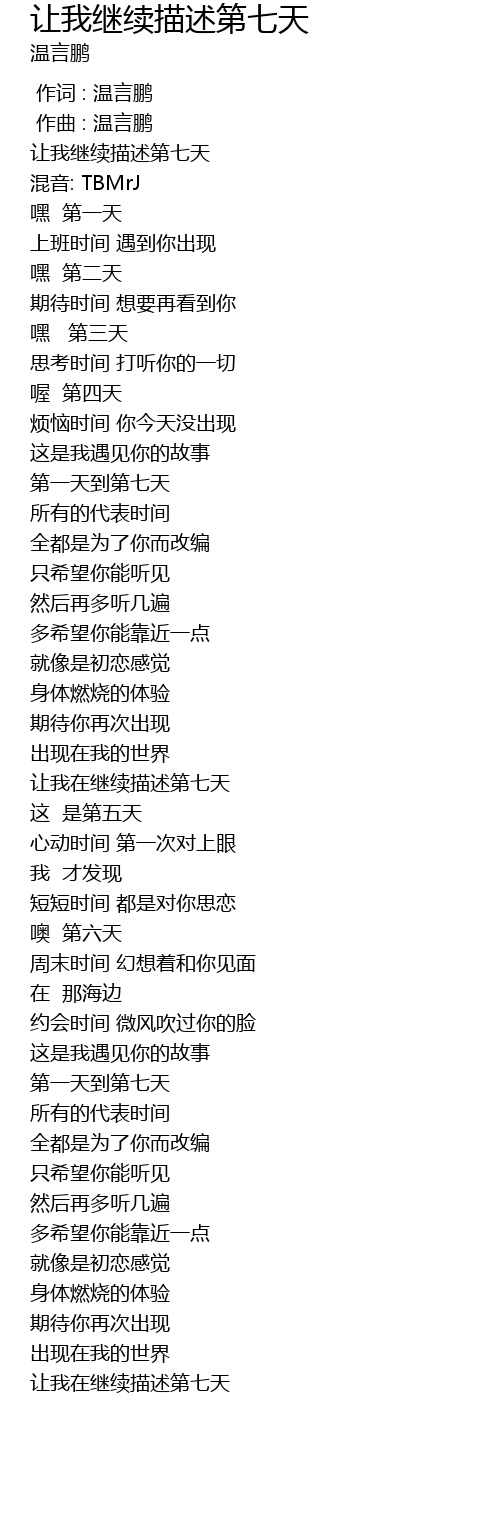 | [02:57.497] | ràng wǒ zài jì xù miáo shù dì qī tiān |