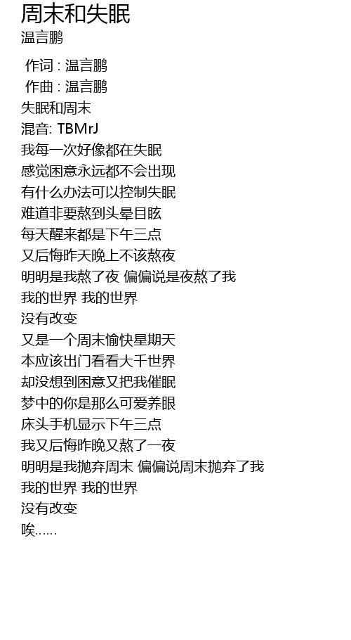 | [00:06.152] | 失眠和周末 |