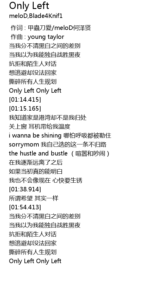 | [01:23.415] | sorrymom 我自己选的这一条不归路 |