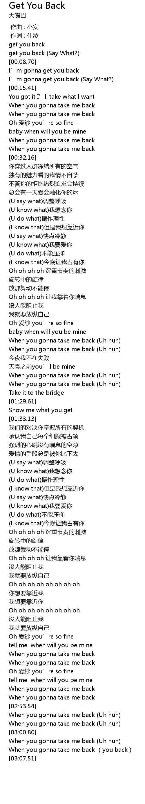 | [02:59.04] | When you gonna take me back (Uh huh) |