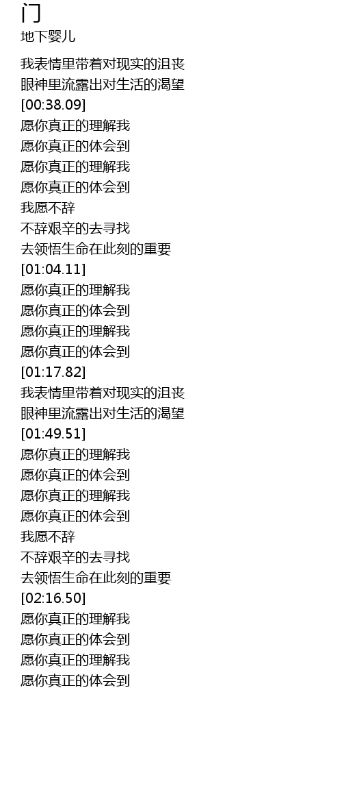 | [00:38.85] | 愿你真正的理解我 |