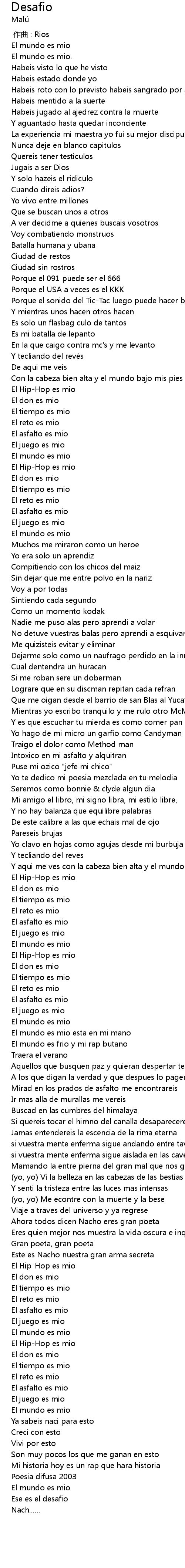 | [03:53.46] | El reto es mio |