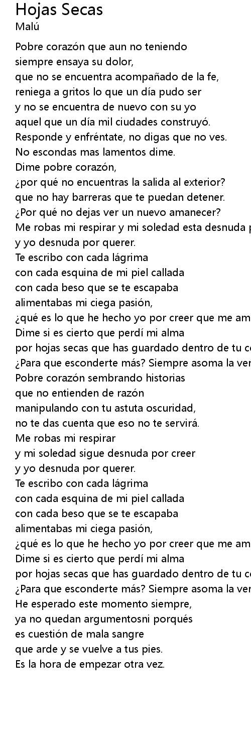 | por hojas secas que has guardado dentro de tu corazo n. | |