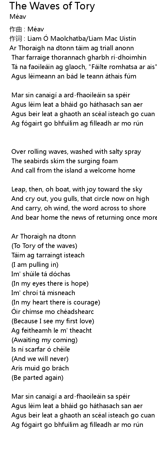 | 作词 : Liam Ó Maolchatba/Liam Mac Uistín | |
