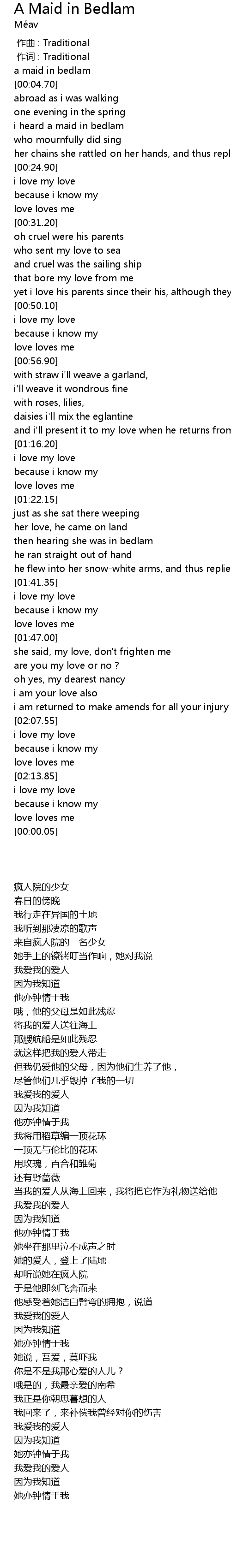 | [00:13.05] | i heard a maid in bedlam |