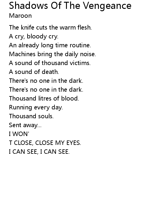| Song | Shadows Of The Vengeance |