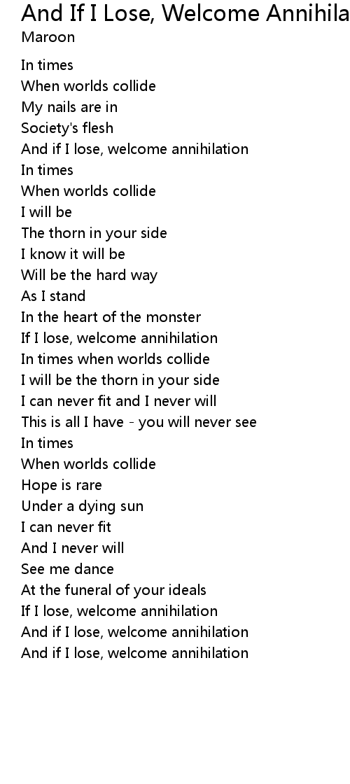 And if I lose, welcome annihilation |