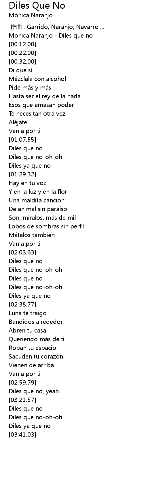 | [01:17.24] | Diles que no-oh-oh |