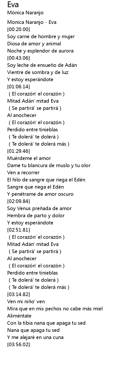 | [00:02.00] | Monica Naranjo - Eva |
