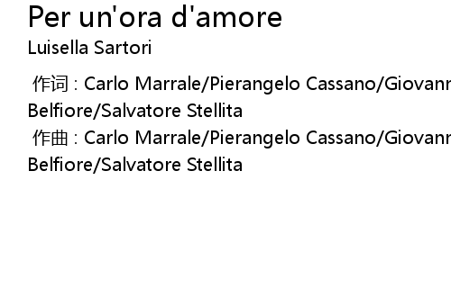 | [00:00.00-1] | zuò qǔ : Carlo Marrale Pierangelo Cassano Giovanni Belfiore Salvatore Stellita |