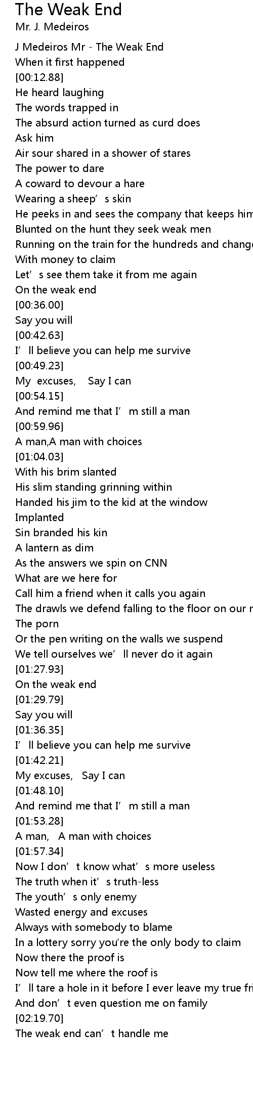 | [00:00.49] | J Medeiros Mr The Weak End |