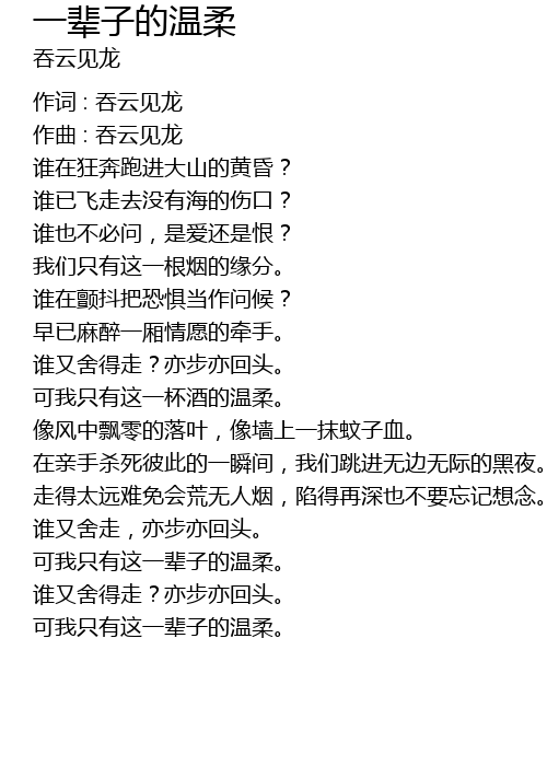 | kě wǒ zhǐ yǒu zhè yī bèi zi de wēn róu. | |