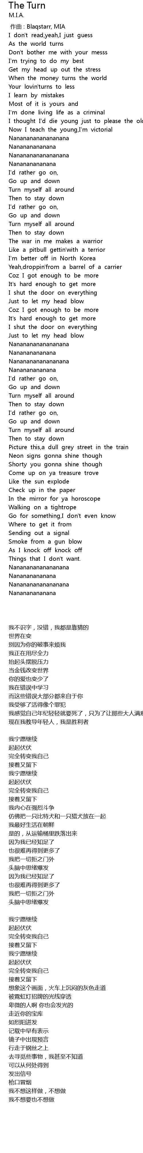 | [00:00.00] | 作曲 : Blaqstarr, MIA |