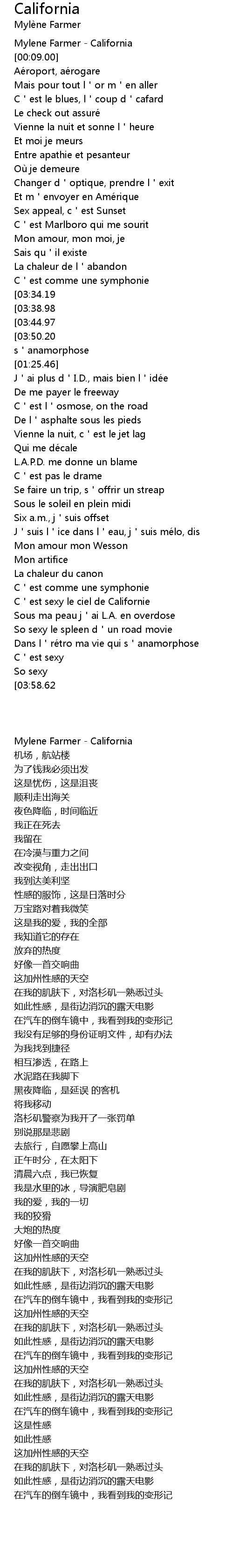 | [00:00.00] | Mylene Farmer California |
