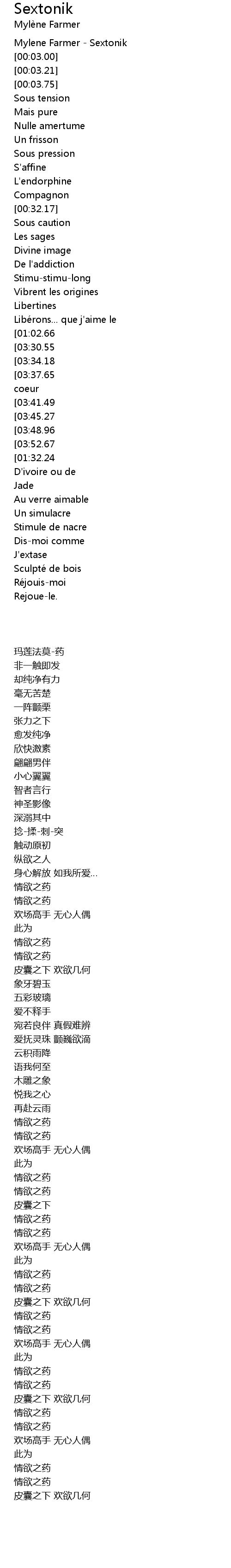 | [00:01.12] | Mylene Farmer - Sextonik |