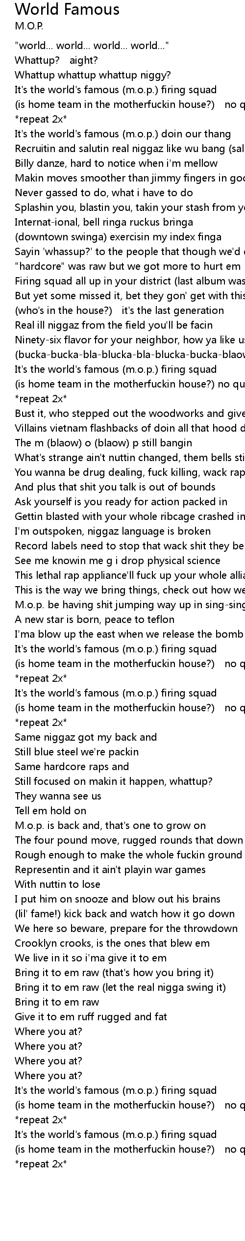 | It' s the world' s famous m. o. p. doin our thang | |