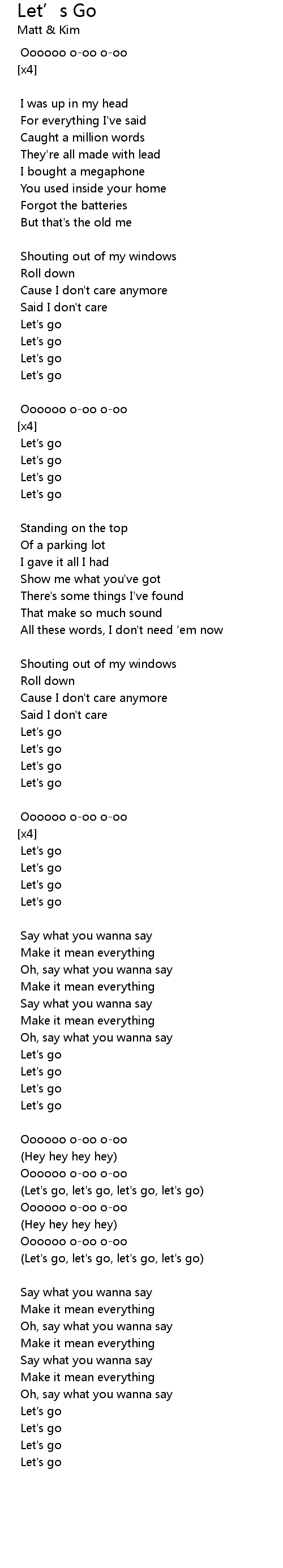 | (Let's go, let's go, let's go, let's go) | |