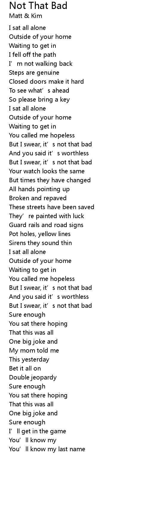 | Song | Not That Bad |