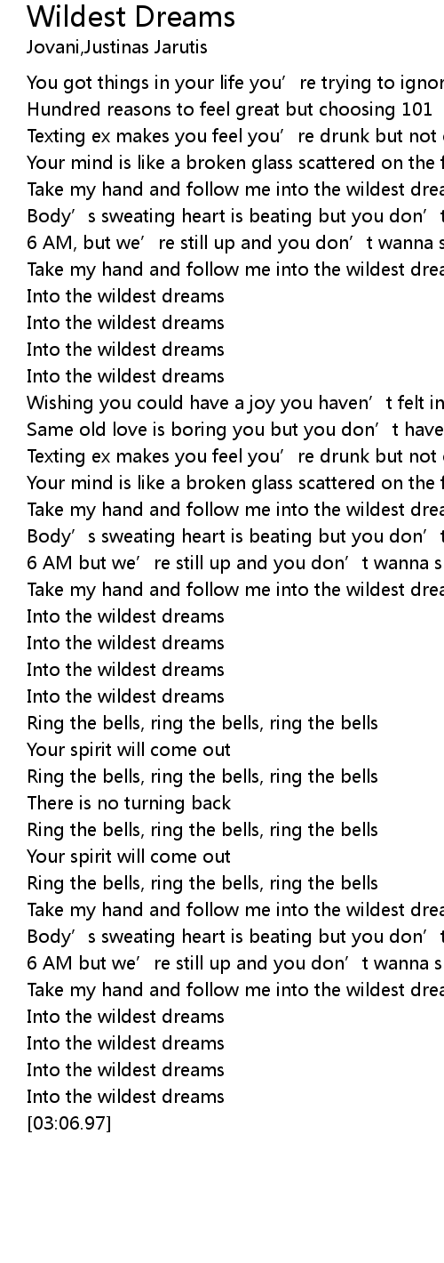 | [01:40.57] | Take my hand and follow me into the wildest dreams |