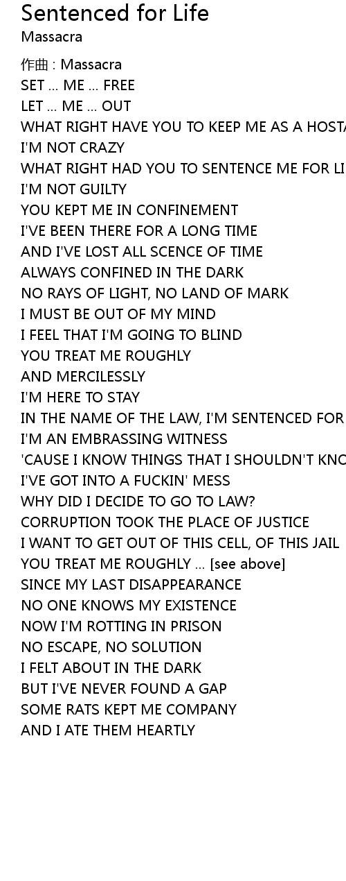 | IN THE NAME OF THE LAW, I' M SENTENCED FOR LIFE | |
