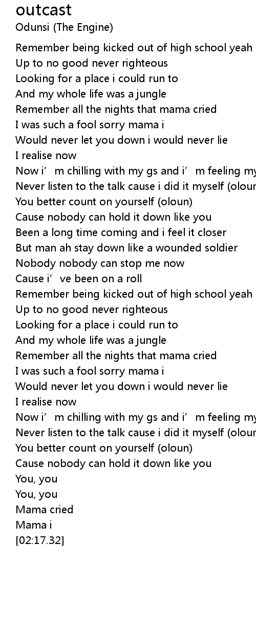 | [00:30.11] | Remember all the nights that mama cried |