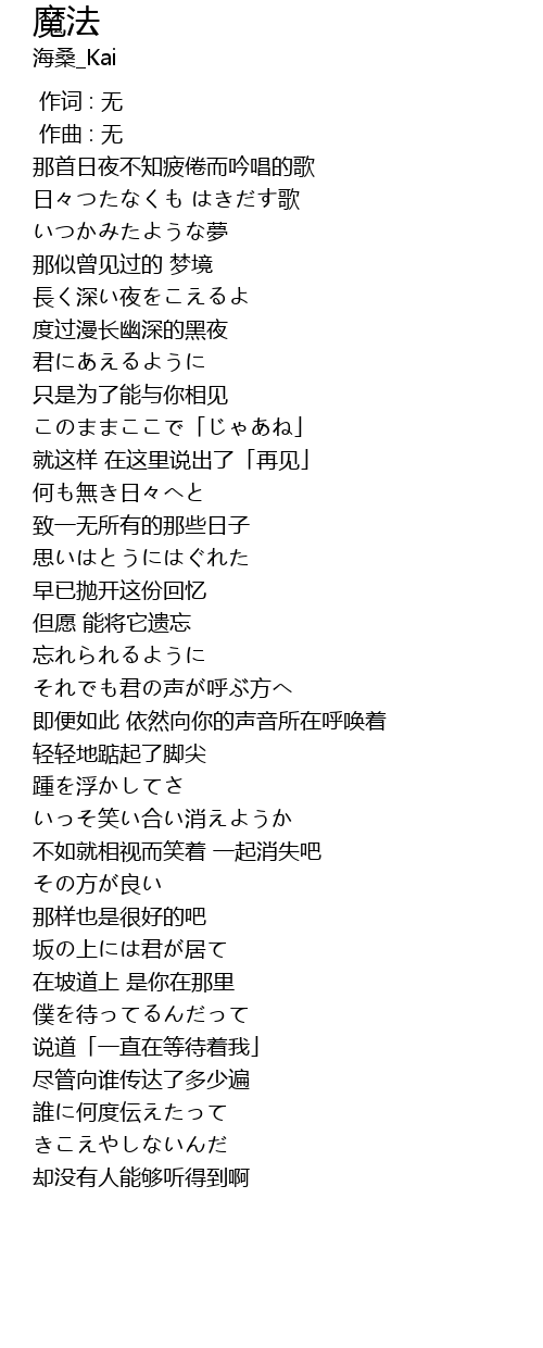 | [00:00.01] | 那首日夜不知疲倦而吟唱的歌 |