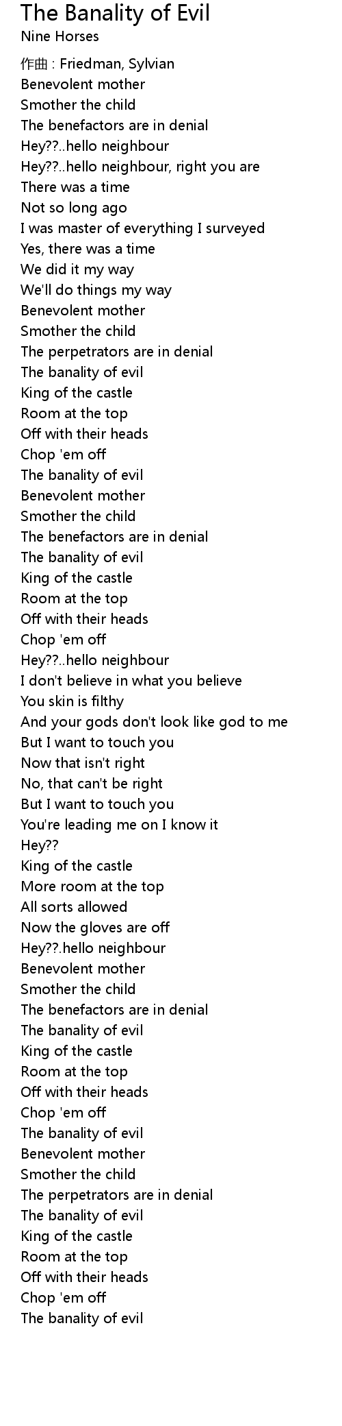 | Song | The Banality of Evil |