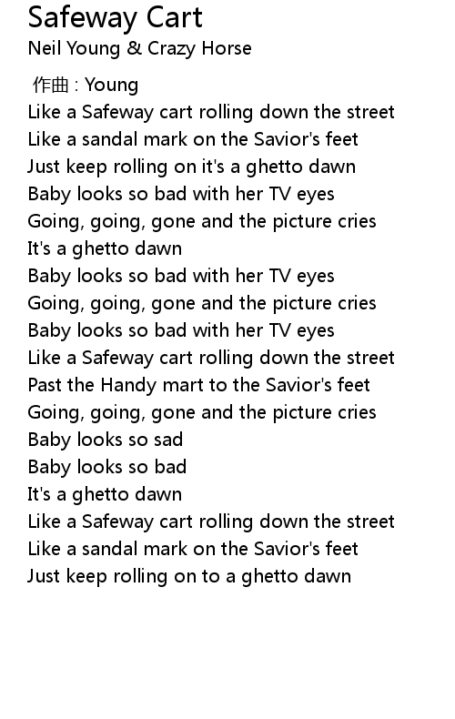 | [00:35.96] | Like a Safeway cart rolling down the street |