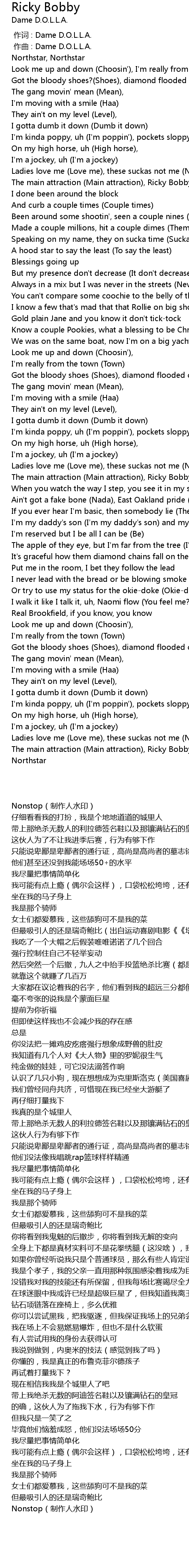 | [00:00.00] | 作词 : Dame D.O.L.L.A. |