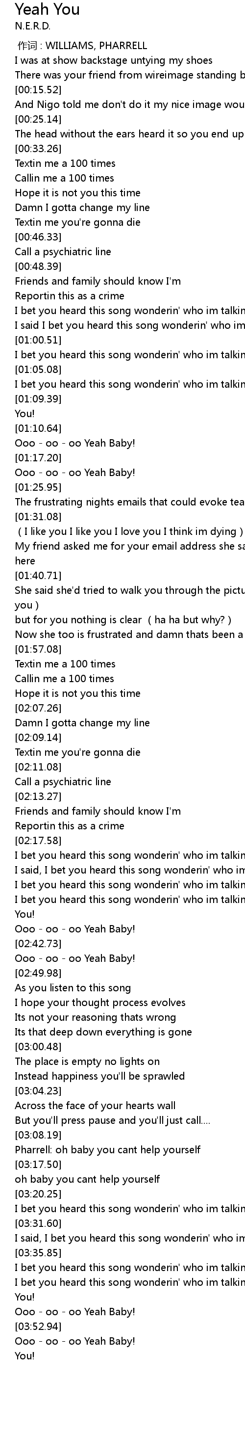 | [03:15.95] | Pharrell: oh baby you cant help yourself |