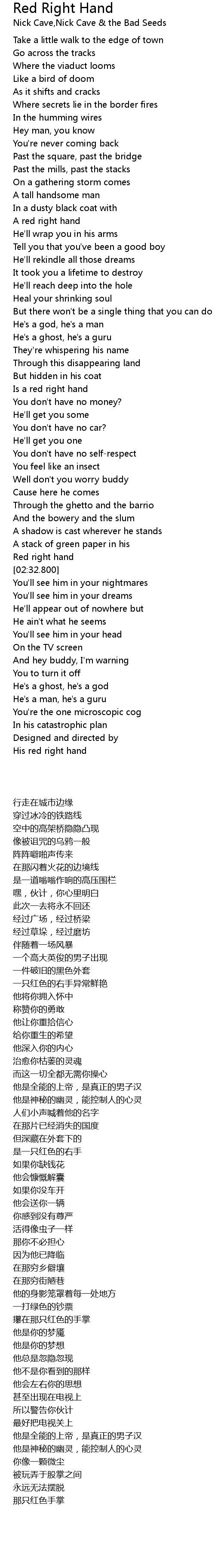 His red right hand |