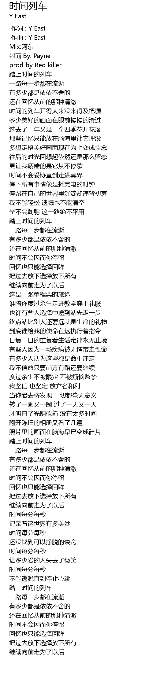 | [00:22.395] | tà shàng shí jiān de liè chē |