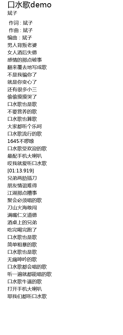 | [02:17.417] | kǒu shuǐ gē dōu huì chàng de gē |