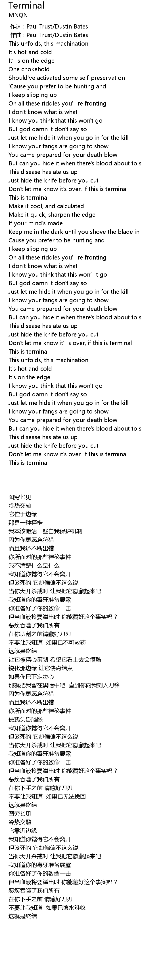 | [00:01.00] | 作曲 : Paul Trust/Dustin Bates |