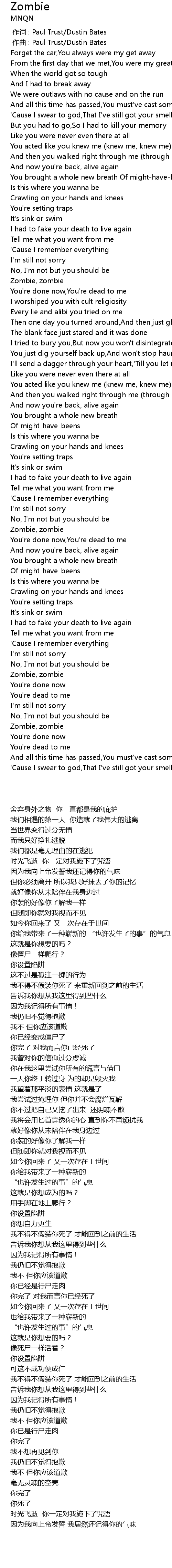 | [03:23.88] | Zombie, zombie |