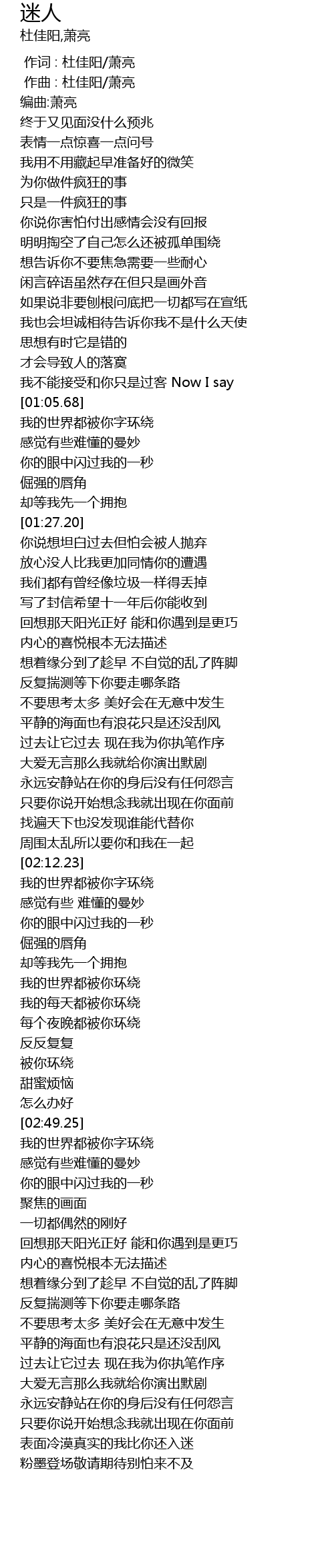 | [00:01.00] | 作曲 : 杜佳阳/萧亮 |