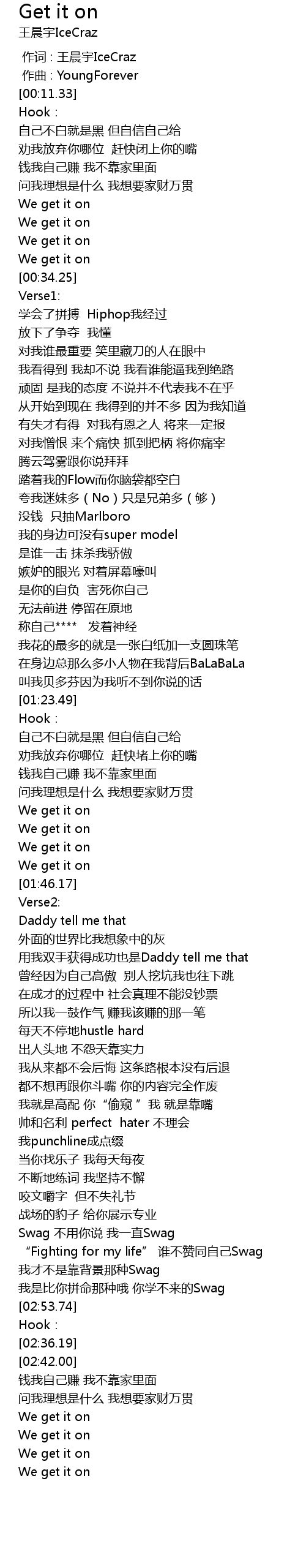 | [02:23.68] | Swag 不用你说 我一直Swag |