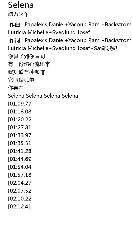 | [03:59.47][02:12.41] | Selena Selena Selena Selena |