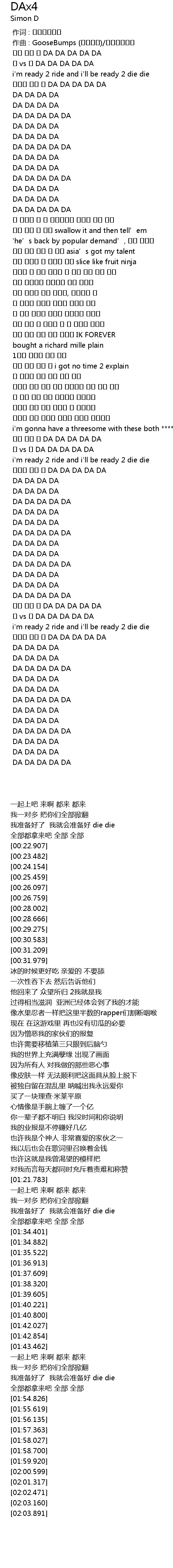 | [01:59.920] | DA DA DA DA |