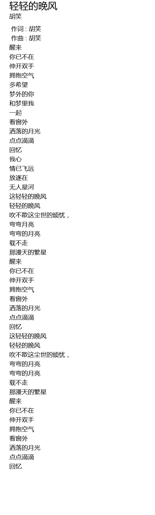 | [00:00.00] | 作词 : 胡笑 |