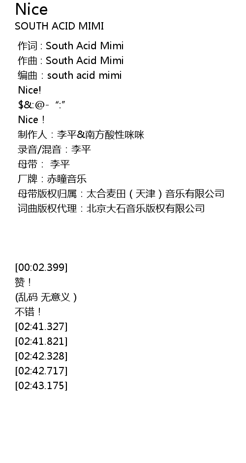 | [00:02.399] | 编曲:south acid mimi |