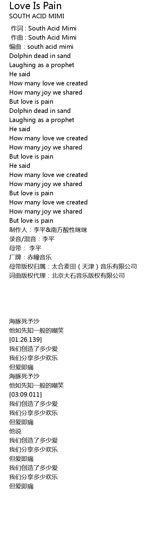 | [06:53.729] | 制作人:李平&南方酸性咪咪 |