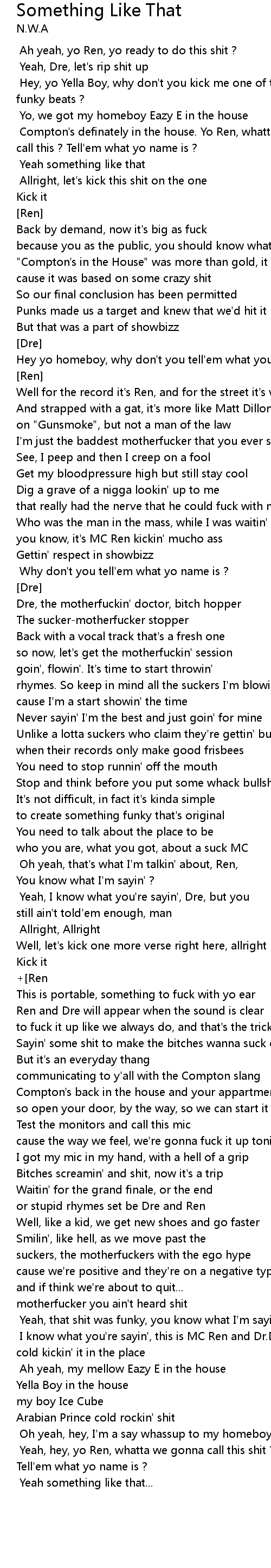 [Dre] Yeah, that shit was funky, you know what I'm sayin', Ren ? |