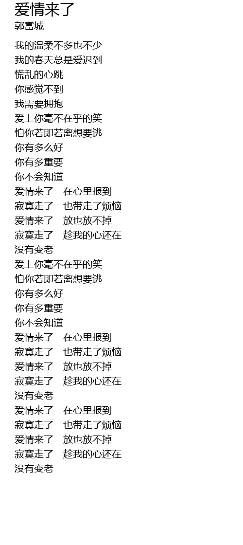 | [00:58.99] | ài qíng lái le zài xīn lǐ bào dào |