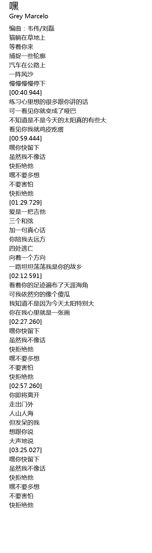 | [01:00.444] | hēi nǐ kuài liú xià |