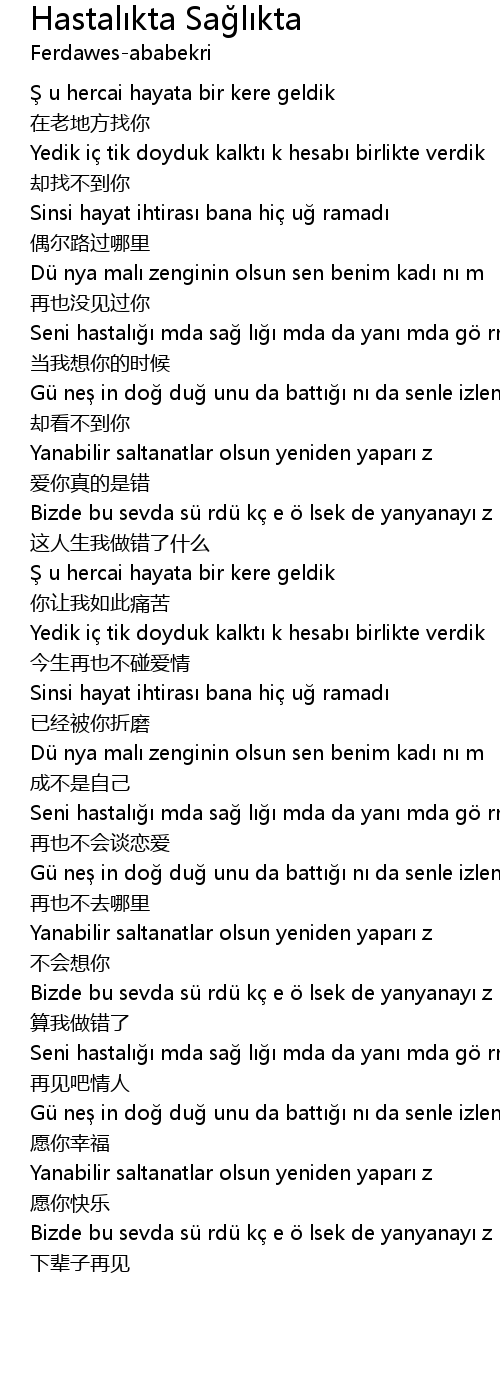 | Song | Hastalıkta Sağlıkta |