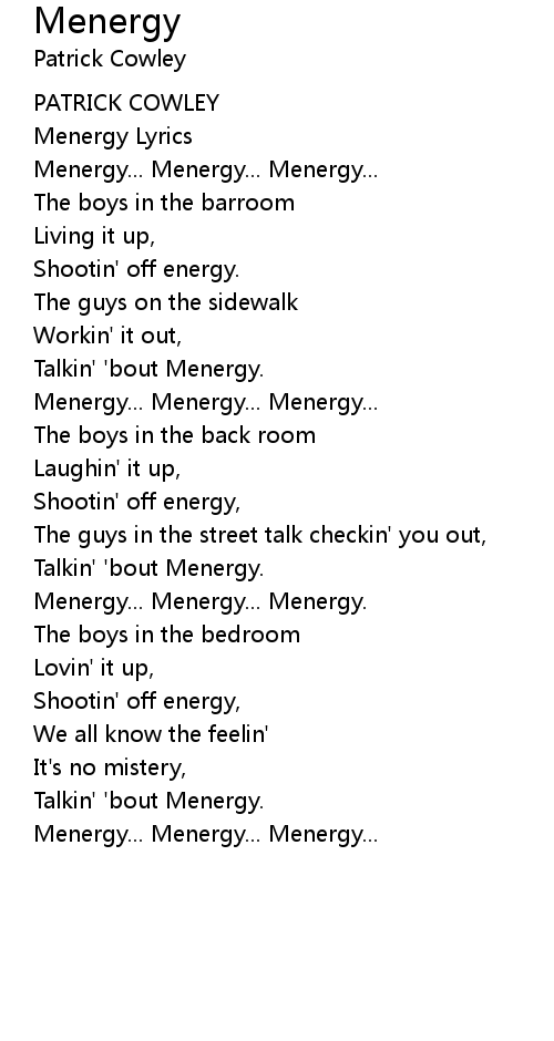 Menergy Lyrics |