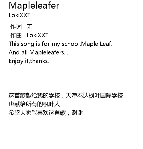 | [00:00.000] | This song is for my school, Maple Leaf. |